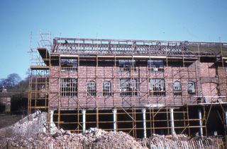 Image shows the Long Warehouse undergoing a previous phase of conservation work in 1982.
